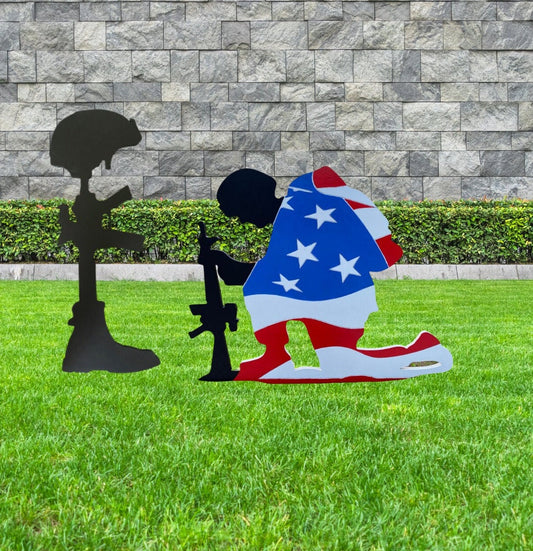 Soldier's Cross & Kneeling Soldier Yard Stake Set Weatherproof PVC