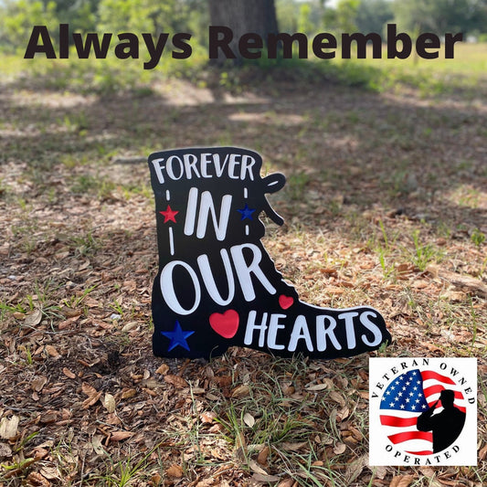 Forever in Our Hearts Patriotic Soldier Boot PVC Yard Art